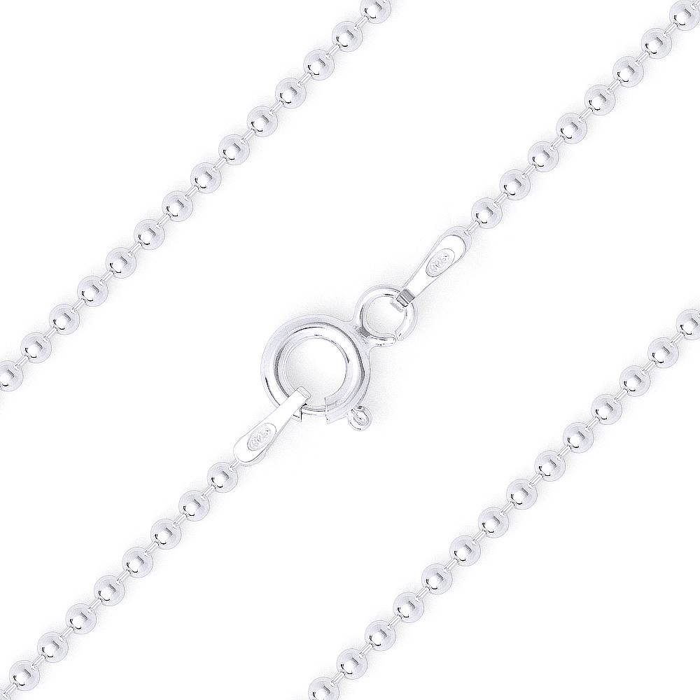 The featured Italy-made 1.2mm chain necklace is made up of classic polished ball-bead links cast in .925 sterling silver finished with a spring-ring clasp for secure wear.