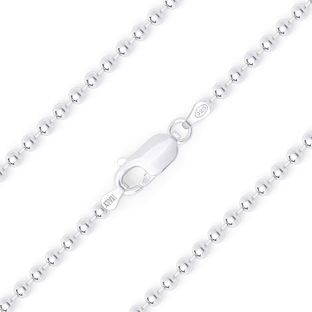 The featured Italy-made 2.2mm chain necklace is made up of classic polished ball-bead links cast in .925 sterling silver finished with a lobster-claw clasp for secure wear.