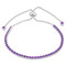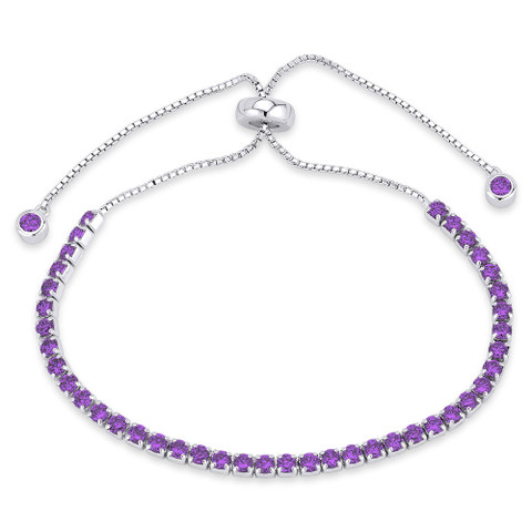 Loading... Please wait...The featured bracelets are cast in .925 sterling silver and showcase 2.8mm purple cubic zirconia crystals set on 4-prong settings. The bracelets are then finished with sliding-lock clasps along box links for secure wear.