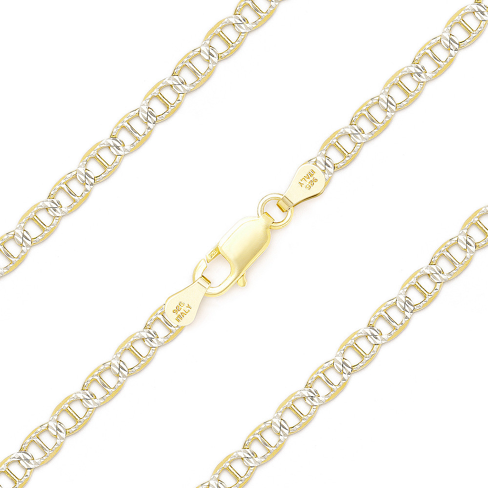 Loading... Please wait...The featured Italian-made 3.5mm chain anklet is cast in 14k yellow gold plated .925 sterling silver mariner links detailed on both sides with diamond-cut pave facets plated with rhodium then finished with a lobster-claw clasp for secure wear.