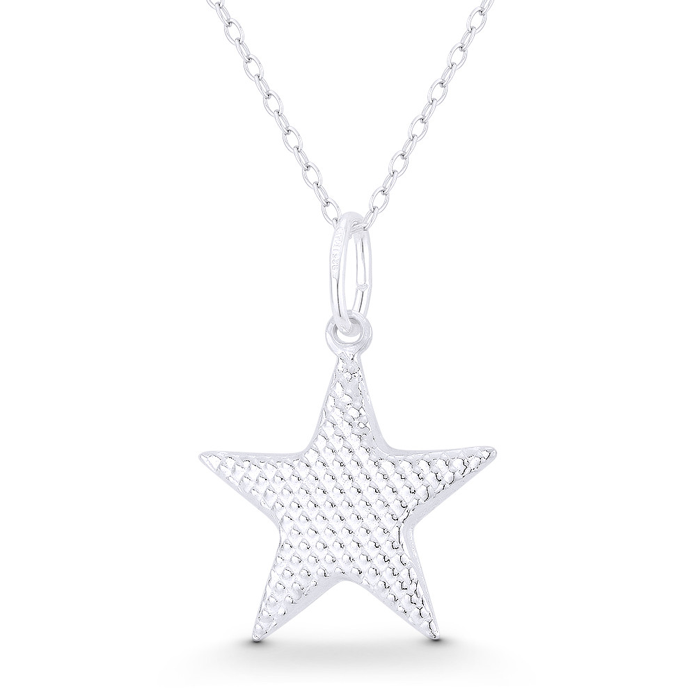 Loading... Please wait...The featured Italian-made pendant is cast in .925 sterling silver and showcases a textured reversible star charm finished w/ a sturdy bail that will accommodate most average-sized chains.