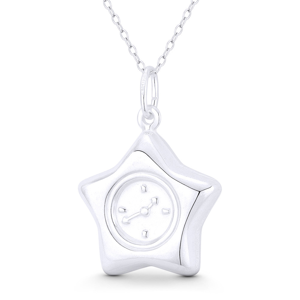 Loading... Please wait...The featured Italian-made pendant is cast in .925 sterling silver and showcases a reversible star charm w/ a watch face. The star is then finished w/ a sturdy bail that will accommodate most average-sized chains.