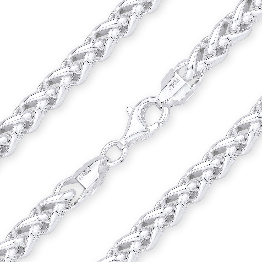 Loading... Please wait...The featured Italian-made 6mm thick wheat chain bracelet is cast in .925 sterling silver and showcases classic spiga links finished with a lobster-claw clasp for secure wear.