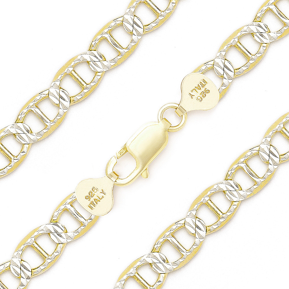 Loading... Please wait...The featured Italian-made 9mm chain bracelet is cast in 14k yellow gold plated .925 sterling silver mariner links detailed on both sides with diamond-cut pave facets plated with rhodium then finished with a lobster-claw clasp for secure wear.
