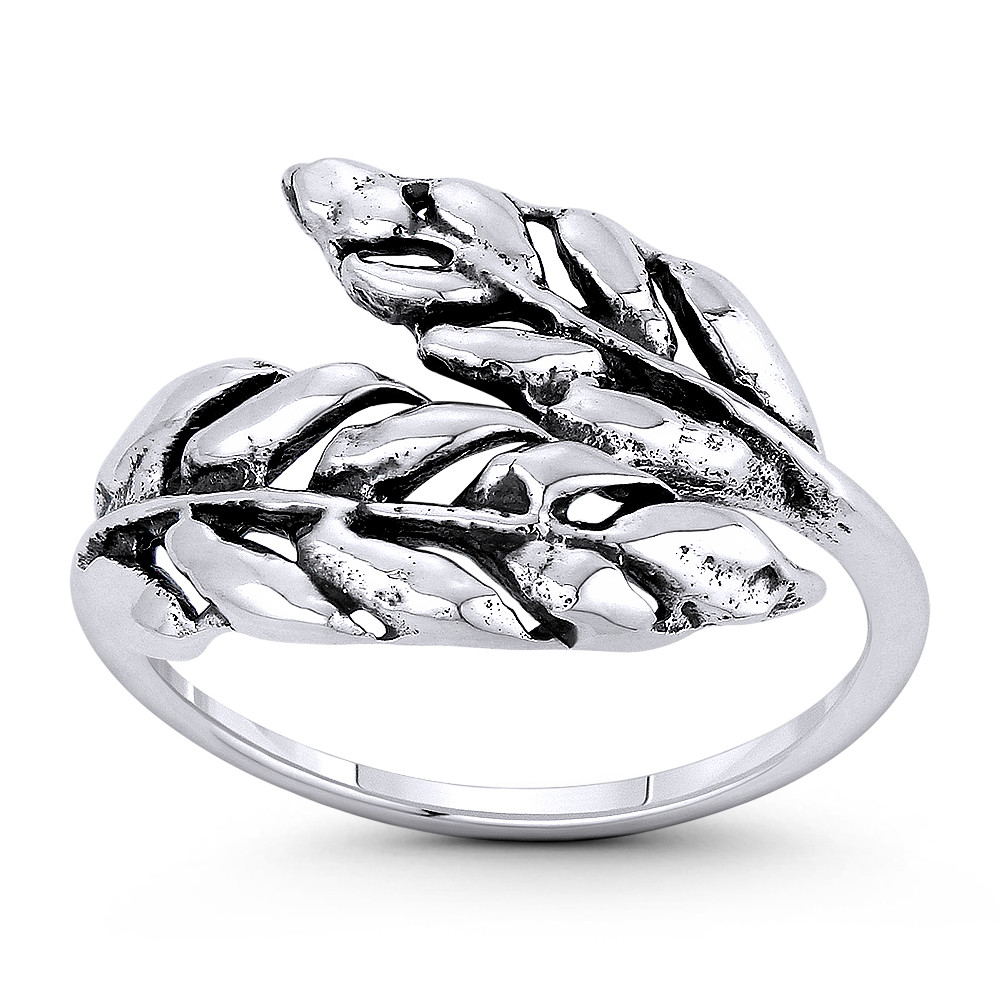 Loading... Please wait...The featured ring is cast in oxidized-finish .925 sterling silver and showcases bypassing branches with leaves finished with a 1.2mm band for a comfortable fit.