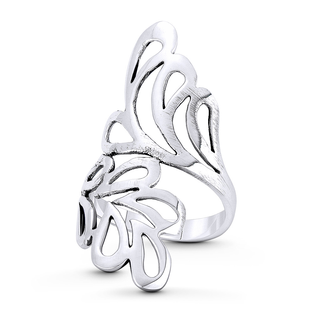 Loading... Please wait...The featured ring is cast in oxidized-finish .925 sterling silver and showcases bypassing branches with leaf cutouts flowing into a 3mm band for a comfortable fit.