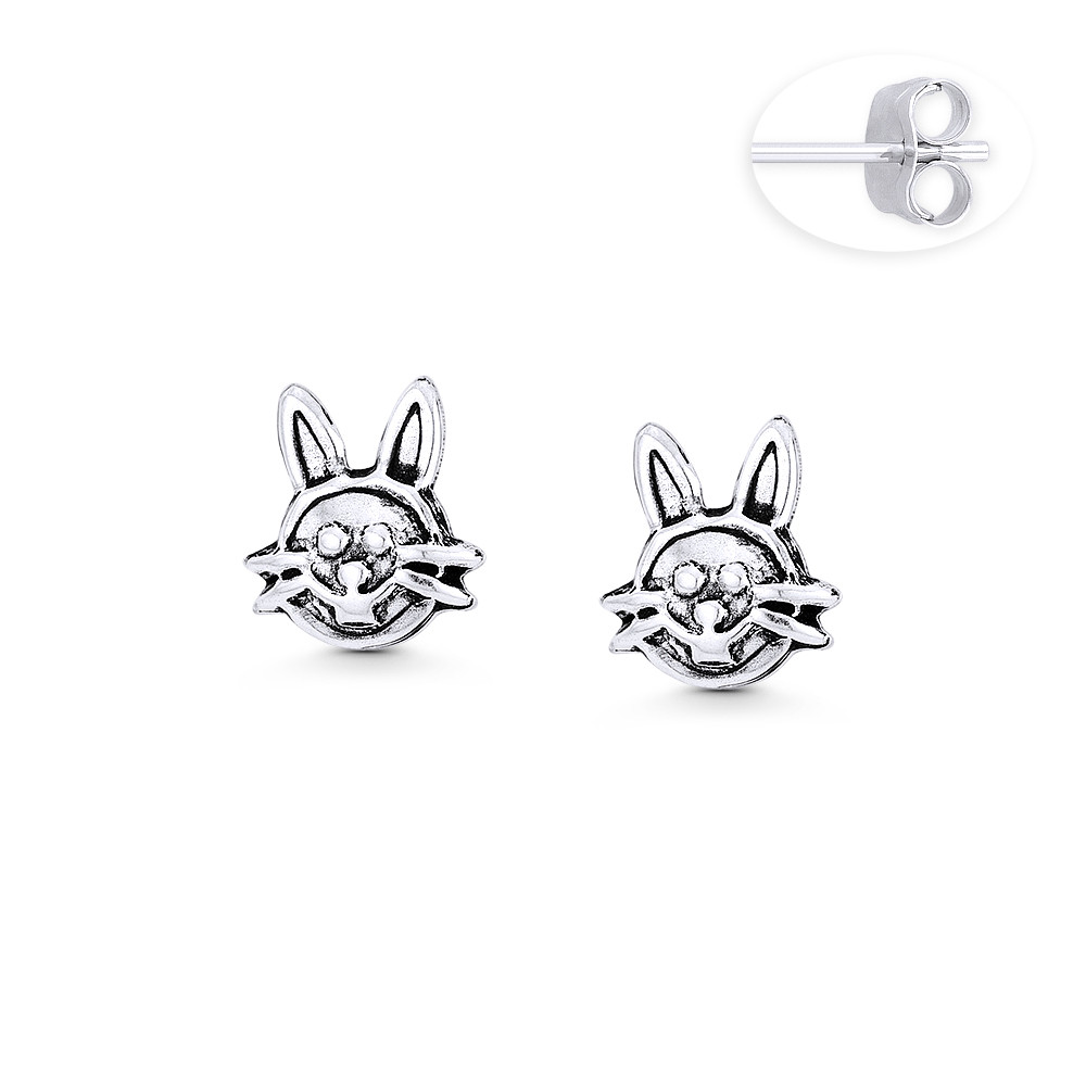 Loading... Please wait...The featured earrings are cast in oxidized-finish .925 sterling silver and showcase rabbit head designs finished with push-back posts & butterfly clasps for secure wear.