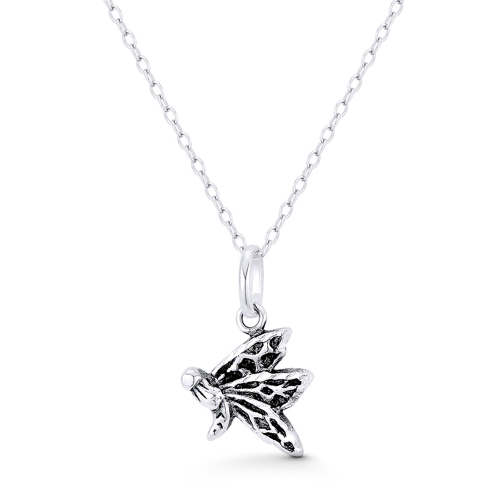 Loading... Please wait...The featured pendant is cast in oxidized .925 sterling silver and showcases a butterfly charm finished w/ a sturdy bail that will accommodate most average-sized chains.