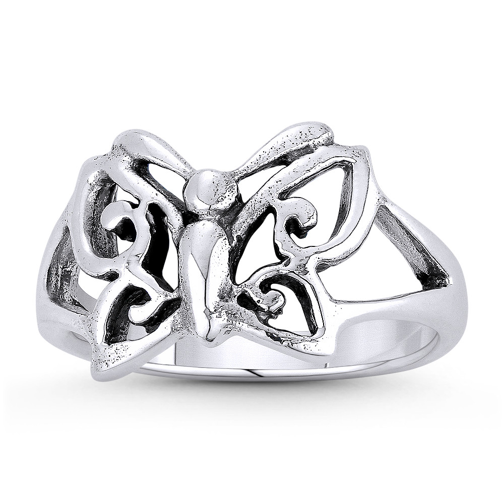 Loading... Please wait...The featured ring is cast in oxidized .925 sterling silver and showcases a finely-crafted butterfly centerpiece finished with a sturdy splitshank band.