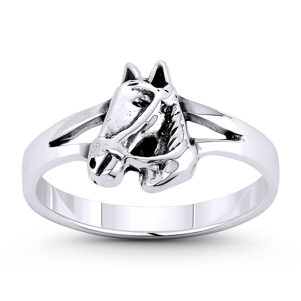 Loading... Please wait...The featured ring is cast in oxidized .925 sterling silver and showcases a finely crafted collared horse finished with a splitshank band for an easy fit around your finger.