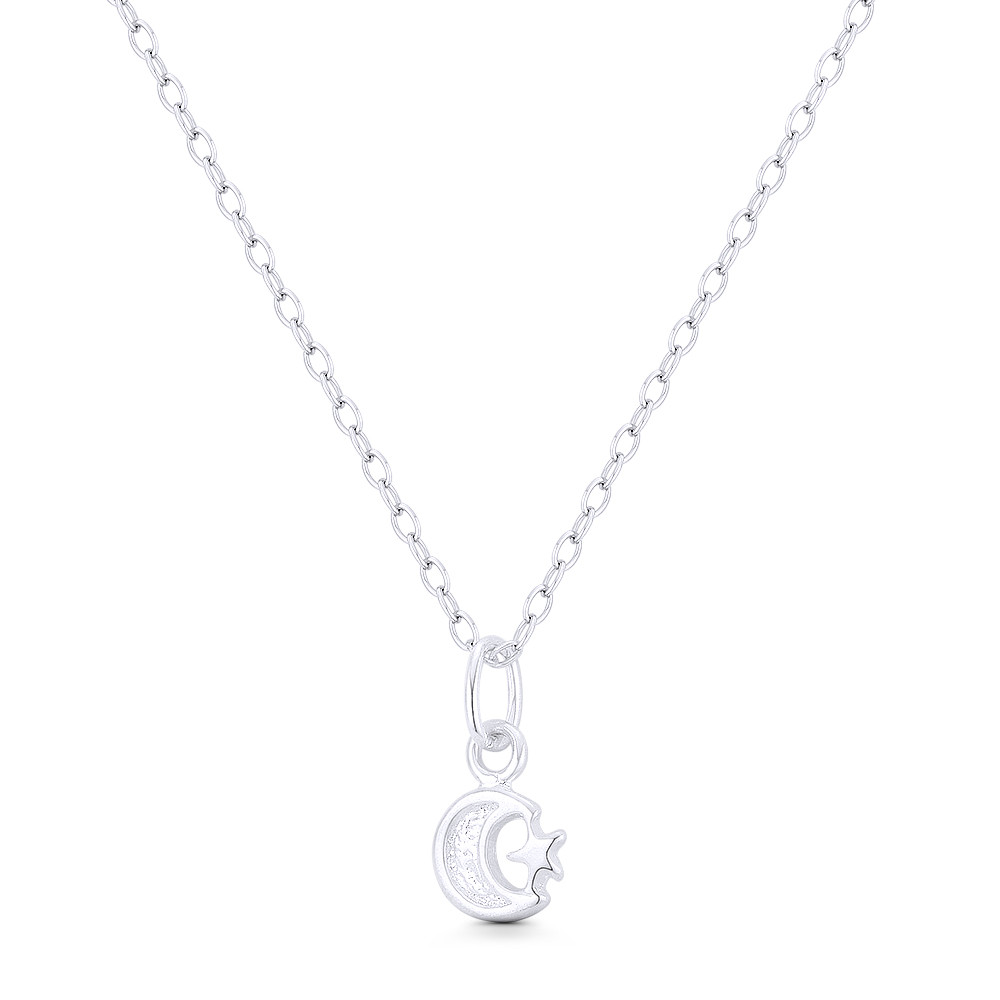 Loading... Please wait...The featured Italian-made pendant is cast in .925 sterling silver and showcases a reversible crescent moon charm finished w/ a sturdy bail that will accommodate most average-sized chains.