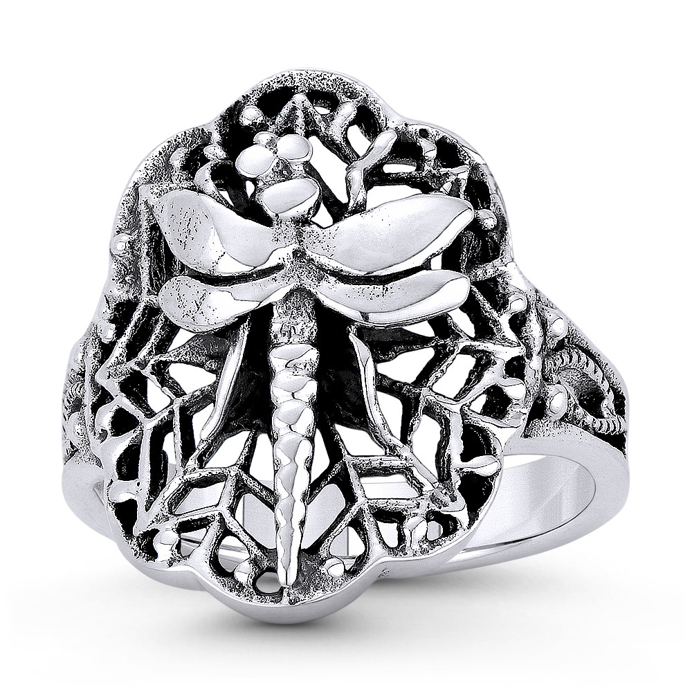 Loading... Please wait...The featured ring is cast in oxidized .925 sterling silver and showcases a finely-crafted dragonfly on spiderwebs finished with a sturdy band.