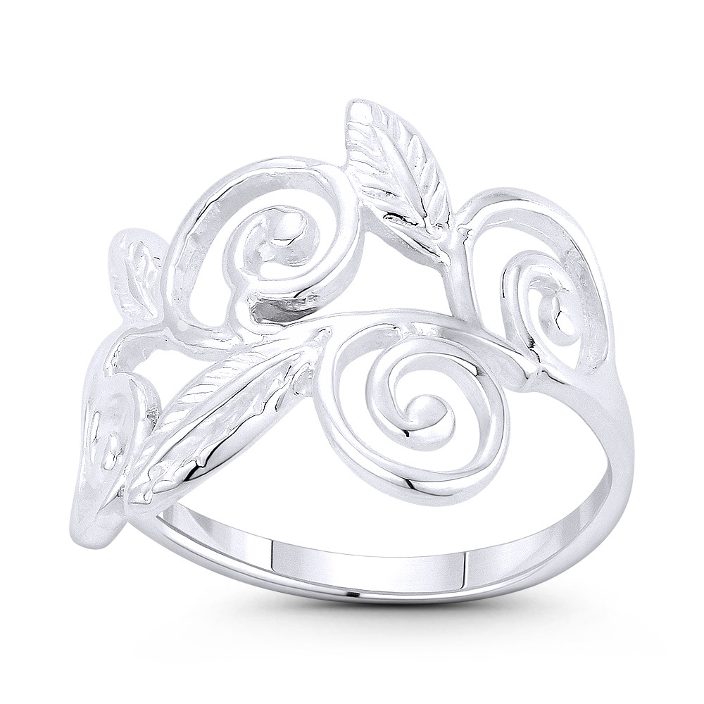Loading... Please wait...The featured ring is cast in .925 sterling silver and showcases a 16mm (0.6in) wide swirling vines & leaves flowing into a classic thin band.