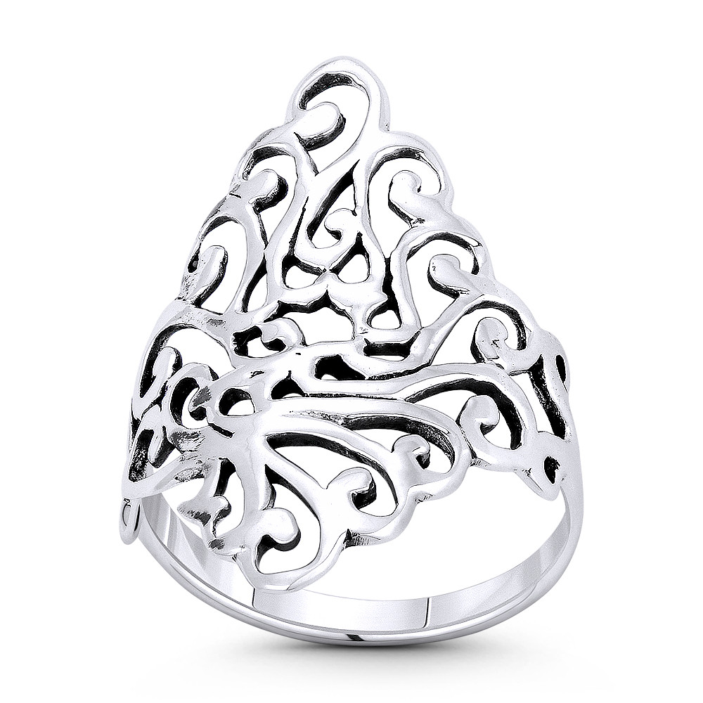 Loading... Please wait...The featured ring is cast in oxidized-finish .925 sterling silver and showcases a 27mm (1.1in) wide centerpiece design made up of swirling vines flowing into a classic flat band.