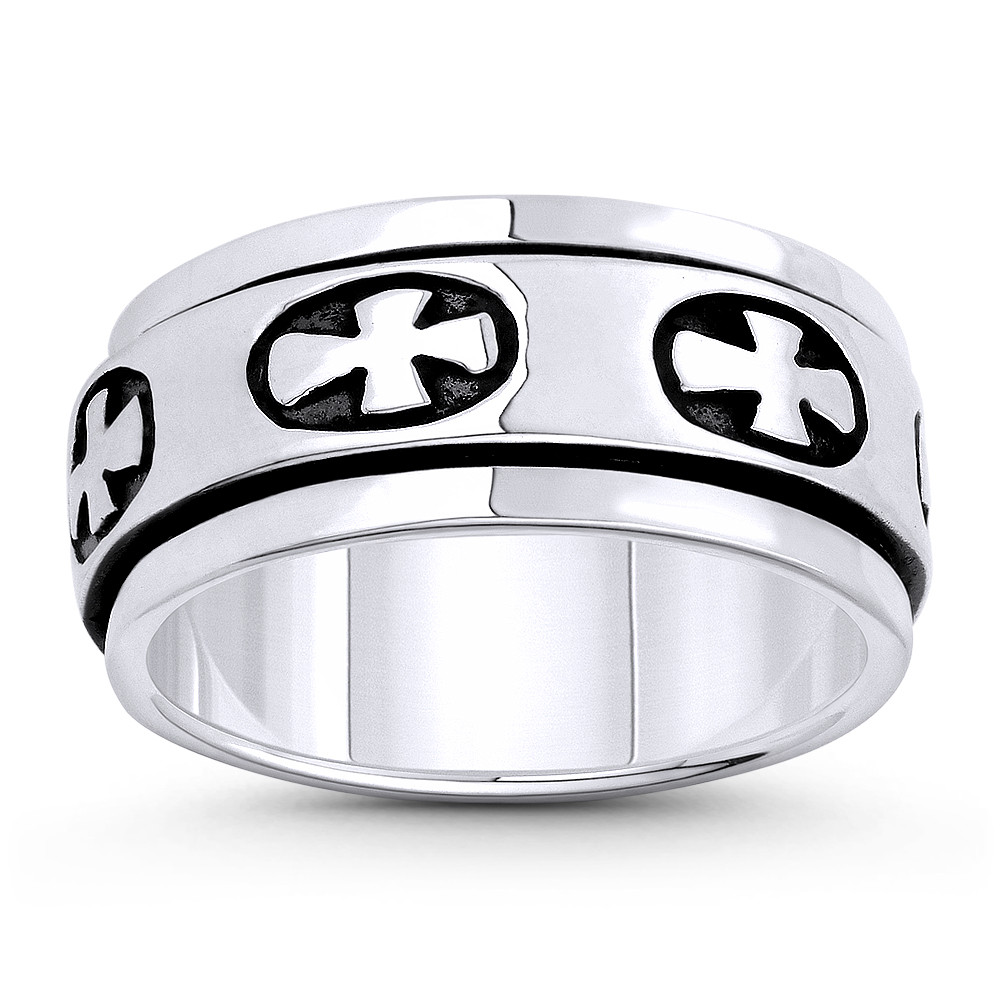 Loading... Please wait...The featured ring is cast in oxidized .925 sterling silver and showcases a 9mm band that holds a spinning inner band detailed with pattée crosses all the way around.