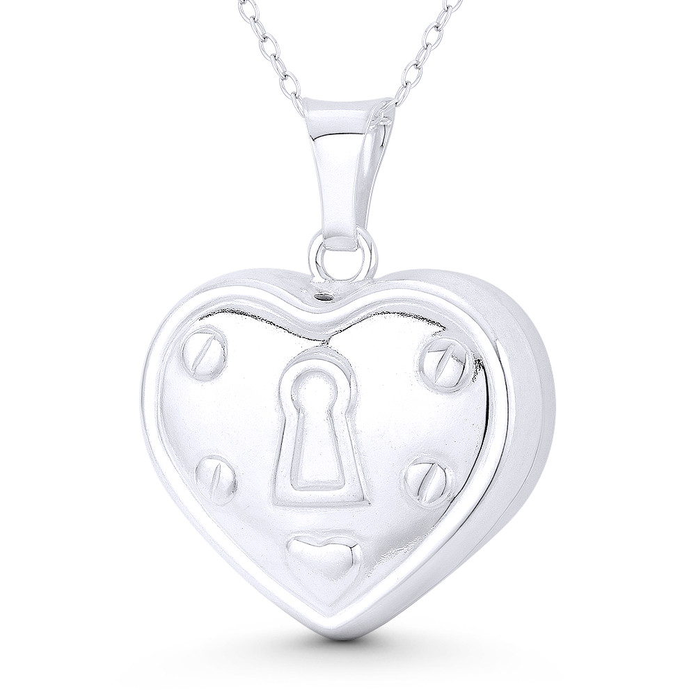 Loading... Please wait...The featured Italian-made pendant is cast in .925 sterling silver and showcases a 3D reversible heart-lock design finished w/ a sturdy bail that will accommodate most average-sized chains.