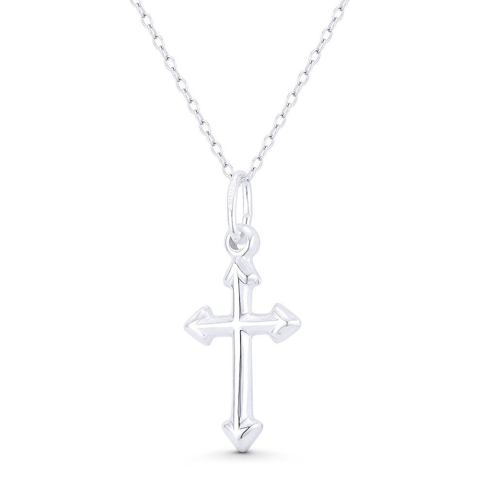 Loading... Please wait...The featured Italian-made pendant is cast in .925 sterling silver and showcases an arrow cross finished with a sturdy bail that can accommodate most average-sized chains.