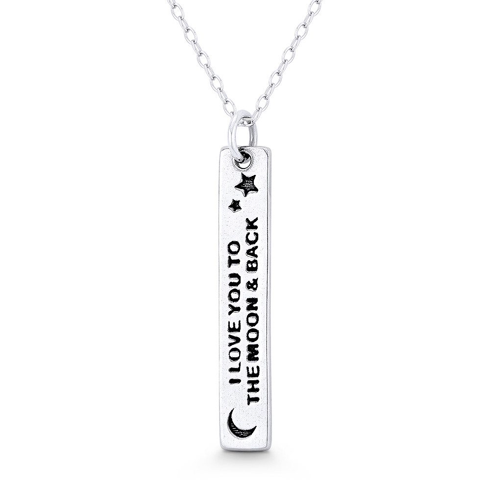 Loading... Please wait...The featured Italian-made pendant is cast in .925 sterling silver and showcases a flat rectangle charm with engraving & finished w/ a sturdy bail that will accommodate most chain sizes.