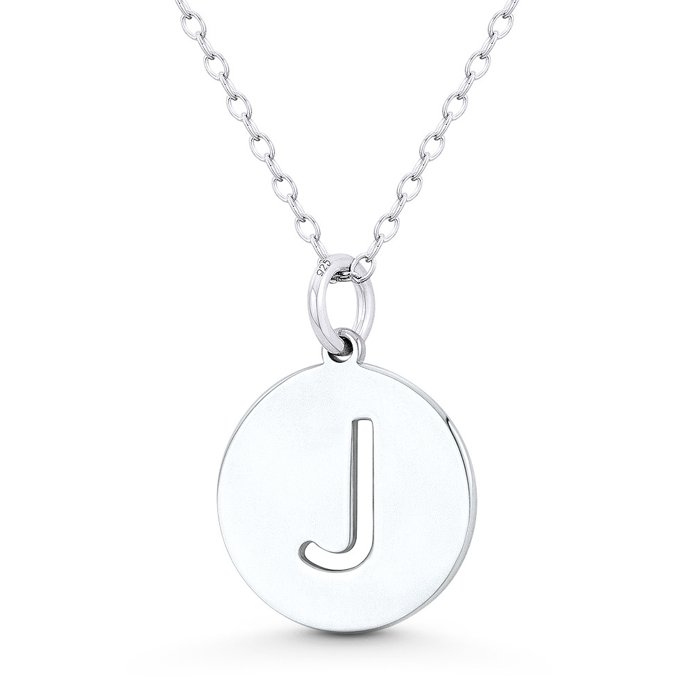 Loading... Please wait...The featured pendant is cast in .925 sterling silver and showcases a 15mm (0.6in) round flat disc detailed with an initial "J" cutout. The disc is then finished with a small ring bail that can accommodate thin chains so it can be worn as a pendant or as an additional charm for your bracelets, necklaces, or other accessories.