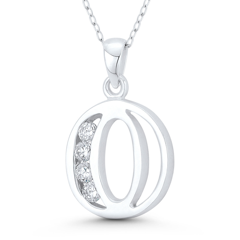 Loading... Please wait...The featured pendant is cast in .925 sterling silver and showcases an initial "O" design adorned with round brilliant cut cubic zirconia crystals. The pendant is then finished with a sturdy bail that can accommodate most chain sizes.