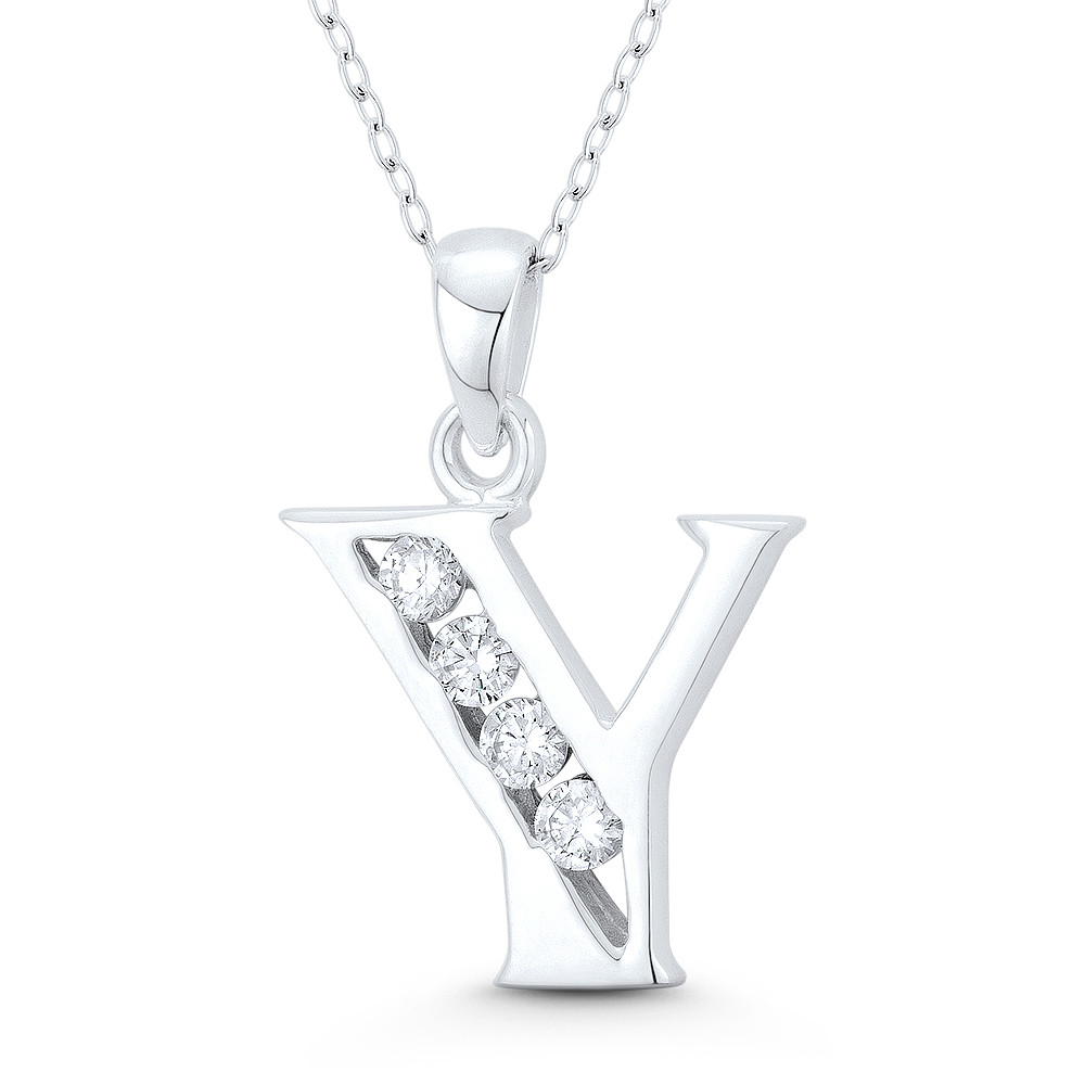 Loading... Please wait...The featured pendant is cast in .925 sterling silver and showcases an initial "Y" design adorned with round brilliant cut cubic zirconia crystals. The pendant is then finished with a sturdy bail that can accommodate most chain sizes.