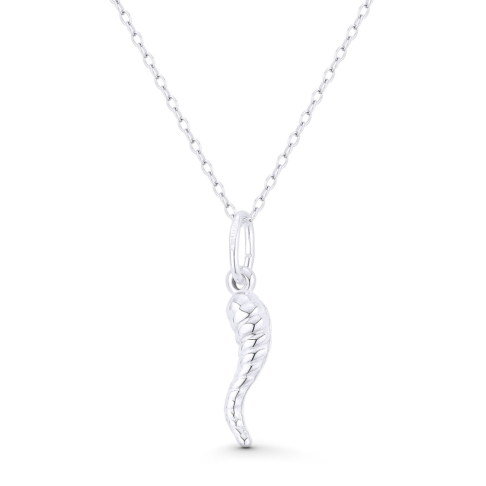 Loading... Please wait...The featured Italian-made pendant is cast in .925 sterling silver and showcases an Italian horn finished with a sturdy bail that can accommodate most chain sizes.