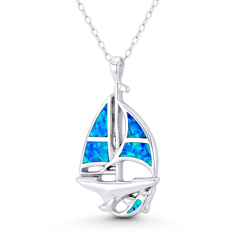 Loading... Please wait...The featured pendant is cast in rhodium-plated .925 sterling silver and showcases a longbow sailboat charm adorned with lab-created opals then finished w/ a sturdy bail that will accommodate most chain sizes.