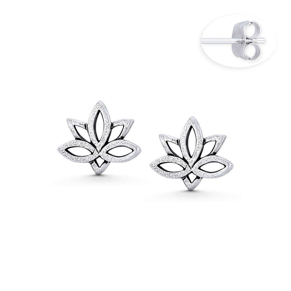 Loading... Please wait...The featured earrings are cast in oxidized-finish .925 sterling silver and showcase 9x11mm lotus flower charms finished with push-back posts & butterfly clasps for secure wear.