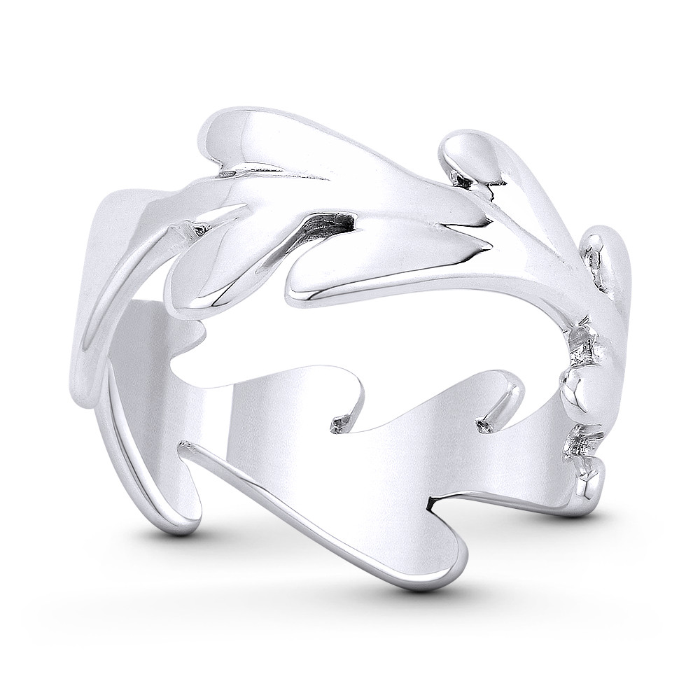 Loading... Please wait...The featured ring is cast in .925 sterling silver and showcases an 8mm (0.3in) eternity style band crafted to resemble an olive branch with leaves.