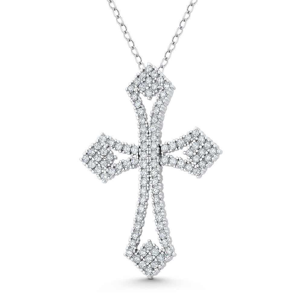 Loading... Please wait...The featured pendant is cast in rhodium-plated .925 sterling silver and showcases a passion cross paved with cubic zirconia crystal clusters then finished with a large & sturdy bail that will accommodate most chain sizes.