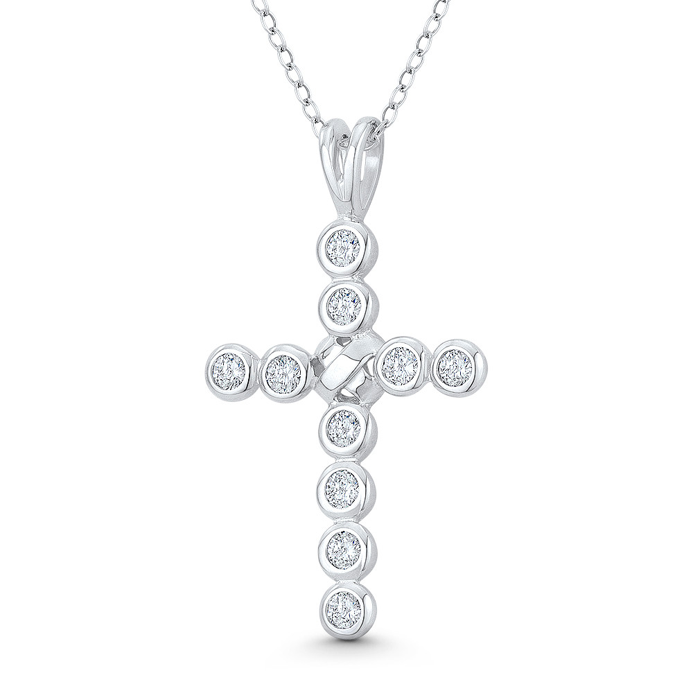 Loading... Please wait...The featured pendant is cast in rhodium-plated .925 sterling silver and showcases a paternoster Cross made up of cubic zirconia crystal bezels and an "X" knot at the center. The cross is then finished with a sturdy bail that will accommodate most chain sizes.