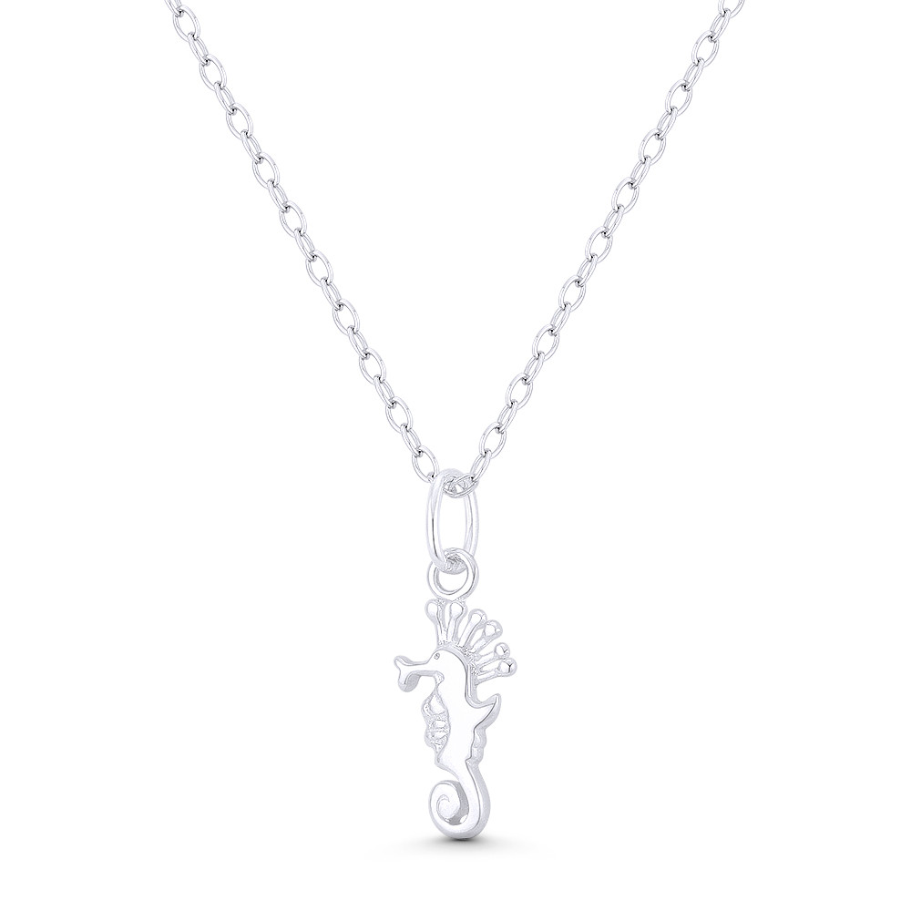Loading... Please wait...The featured Italian-made pendant is cast in .925 sterling silver and showcases a seahorse charm finished w/ a sturdy bail that will accommodate most average-sized chains.