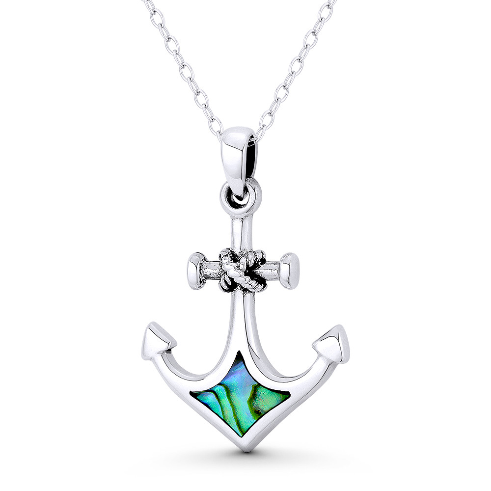 Loading... Please wait...The featured pendant is cast in rhodium-plated .925 sterling silver and showcases an anchor charm adorned with a mother-of-pearl then finished w/ a sturdy bail that will accommodate most chain sizes.