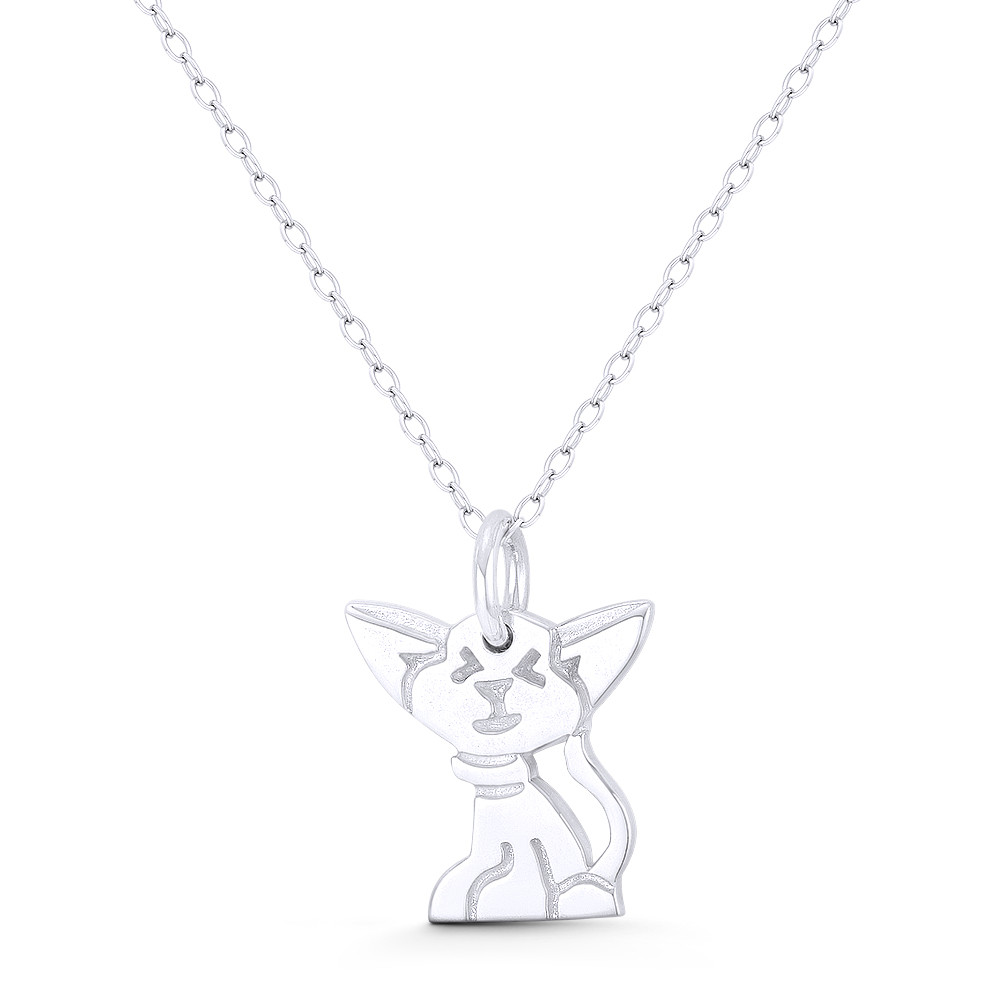 The featured pendant is cast in .925 sterling silver and showcases a 16x15mm (0.6x0.6in) cat charm finished with a sturdy ring-bail that can accommodate most average-sized chains.