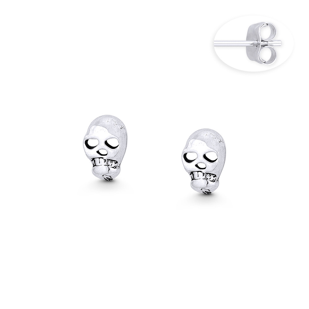 Loading... Please wait...The featured earrings are cast in oxidized-finish .925 sterling silver and showcase skull designs finished with push-back posts with butterfly clasps for secure wear.