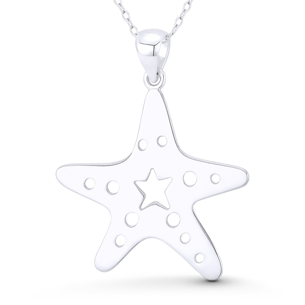 Loading... Please wait...The featured pendant is cast in .925 sterling silver and showcases a flat starfish charm finished w/ a sturdy bail that will accommodate most chain sizes.