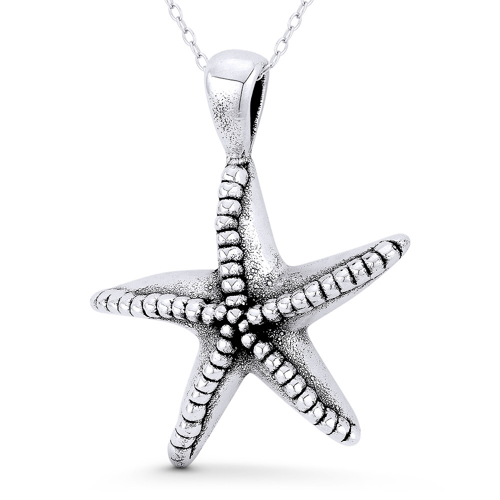 Loading... Please wait...The featured lightweight & hollow pendant is cast in oxidized .925 sterling silver and showcases a hollow-cast 3D starfish charm finished w/ a sturdy bail that will accommodate most chain sizes.
