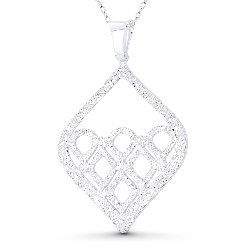 Loading... Please wait...The featured Italian-made pendant is cast in .925 sterling silver and showcases freeeform-shaped patterns in a tear-drop charm finished w/ a sturdy bail that will accommodate most chain sizes.