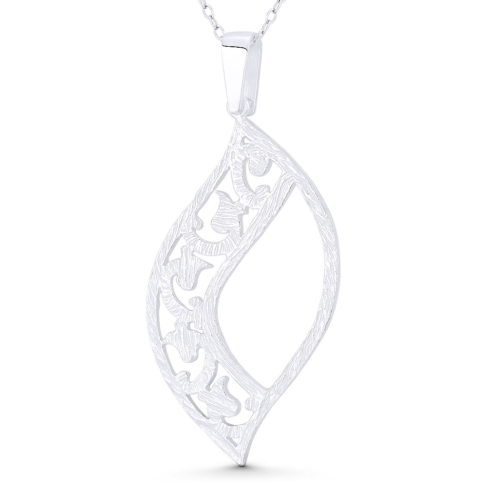 Loading... Please wait...The featured pendant is cast in .925 sterling silver and showcases a textured leaf design & sprouts finished w/ a sturdy bail that will accommodate most chain sizes.
