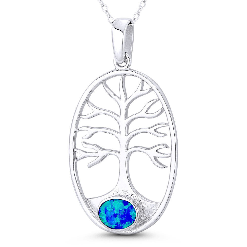 Loading... Please wait...The featured pendant is cast in rhodium-plated .925 sterling silver and showcases a Tree-of-Life charm framed in an oval outline finished w/ a sturdy bail that will accommodate most chain sizes.