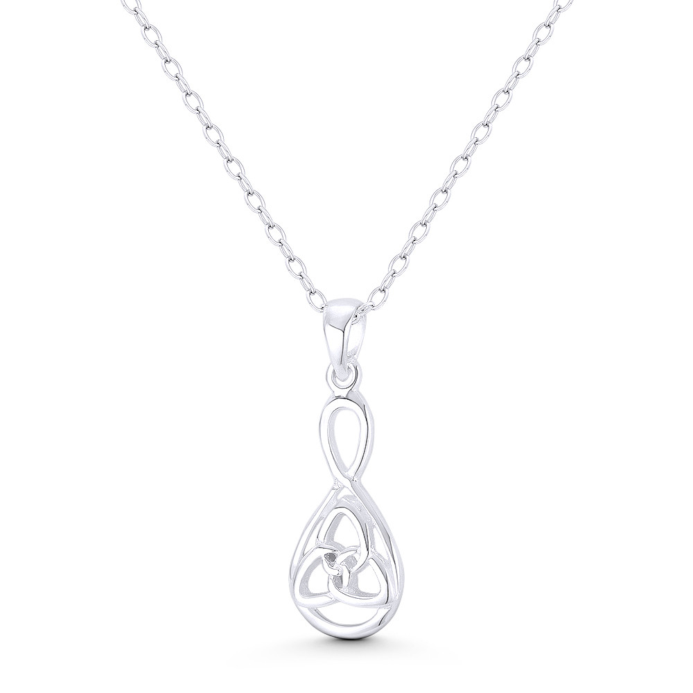 Loading... Please wait...The featured charm is cast in .925 sterling silver and showcases a 16x8mm (0.6x0.3in) trinity-knot placed in an eternity loop charm. The charm is then finished with a sturdy bail that can accommodate most average-sized chains.