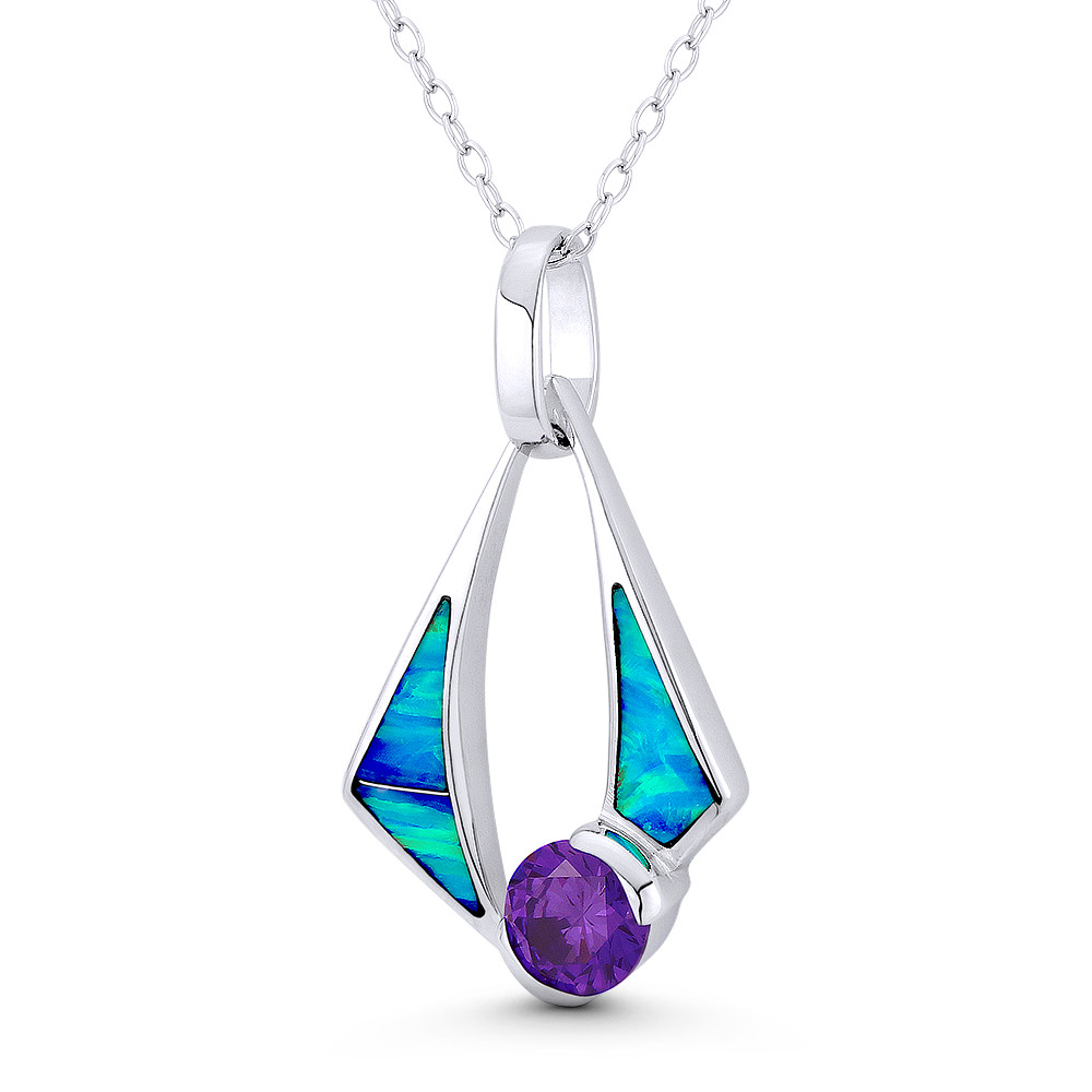 Loading... Please wait...The featured pendant is cast in rhodium-plated .925 sterling silver and showcases a windsail charm adorned with lab-created opals & a solitaire cz crystal then finished with a sturdy bail that can accommodate most chain sizes.